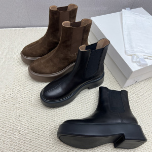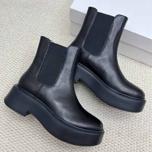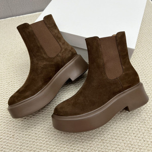东莞厚街~2025年冬季新款极简天花板的切尔西厚底短靴圆头真皮靴