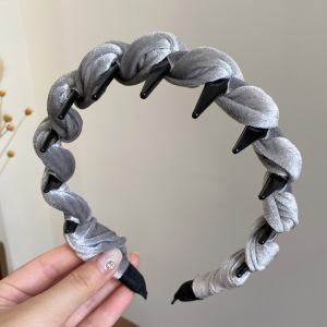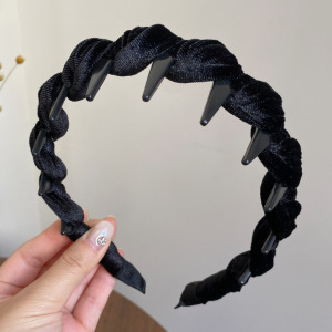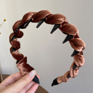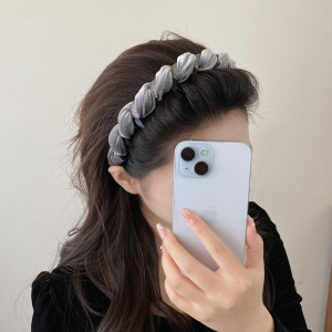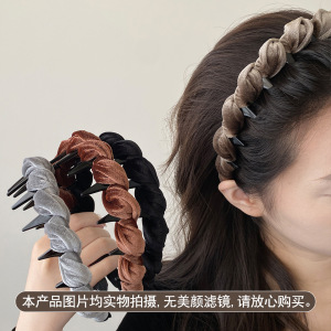正反两戴纯色丝绒缠绕带齿发箍女秋冬高颅顶显脸小头箍防滑洗脸新