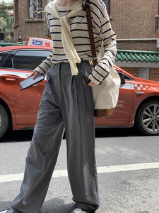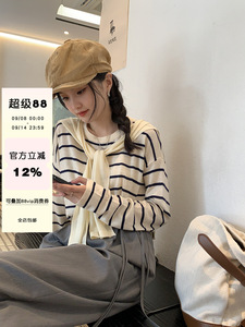 2025早秋上衣设计感打底衫韩系圆领条纹长袖t恤女加披肩两件套