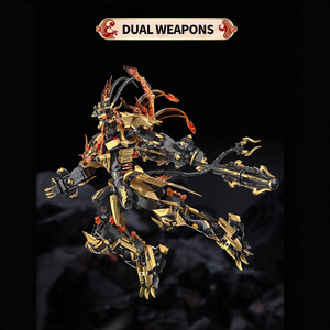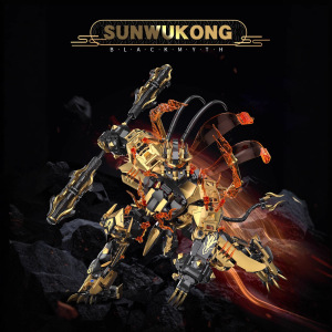 国风黑色悟空机甲积木带武器支架可动模型拼装玩具送男孩礼物跨境