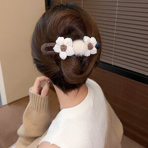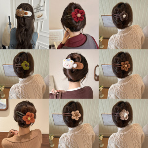 2025新款花朵一字夹发卡头饰鸭嘴夹盘发发夹女后脑勺咖色大号抓夹