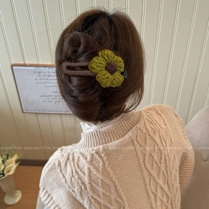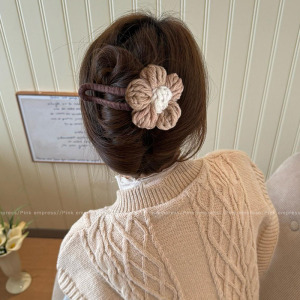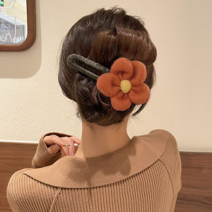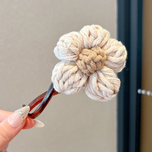 8#咖色毛线花朵12cm鸭嘴抓夹