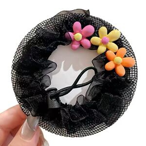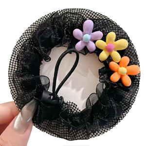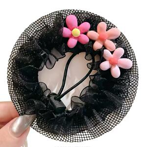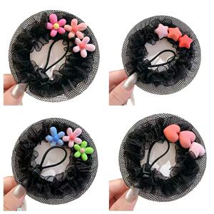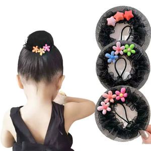 花朵儿童舞蹈发网女童扎丸子头盘发器头饰隐形拉丁舞网兜头花发饰