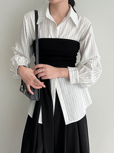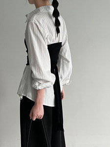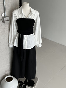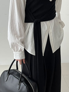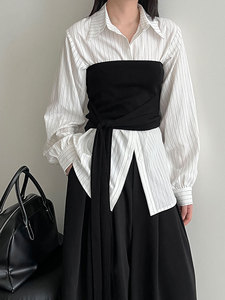 NS 韩系可拆卸假两件收腰条纹衬衫女25秋季新款设计感小衫K6579