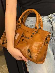 2025新款油蜡牛皮机车包手提女包潮流时尚中性风单肩斜挎包真皮包