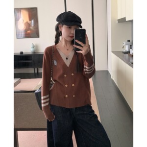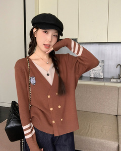 实拍2025秋胖mm大码双排扣假两件针织衫韩版上衣学院风毛衣69270