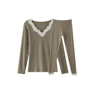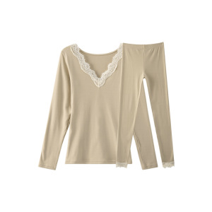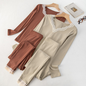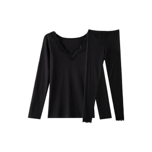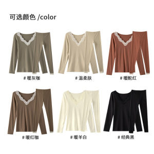 萝卜大叔秋衣秋裤套装女秋冬薄款修身打底衫无痕蕾丝设计保暖内衣