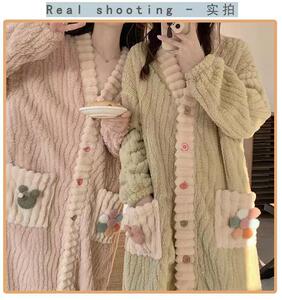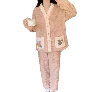 秋冬新品甜美法兰绒睡衣套装加厚保暖韩版暖暖套装可外穿家居服女