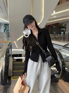 黑色立领双拉链长袖卫衣女秋季新款韩系修身显瘦设计感小众外套潮