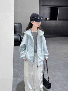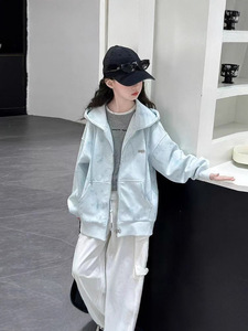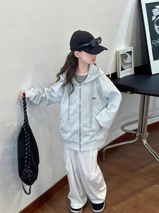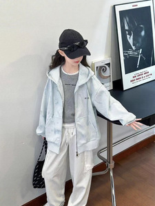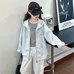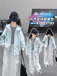 女童秋装薄款扎染连帽外套2025新款中大童韩版洋气长袖拉链开衫潮