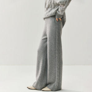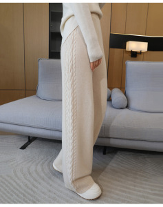 大克重必入!加厚纯羊毛阔腿裤女外穿侧边麻花软糯直筒托地裤