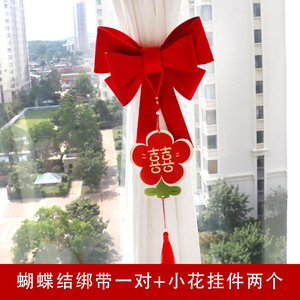 婚房布置结婚窗帘绑带房间装饰新房喜字挂饰拉花男方女方卧室客厅