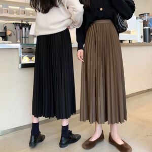 黑色半身裙女秋季2025年新款裙子秋冬中长款百褶裙显瘦高腰A字裙