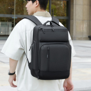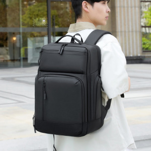跨境商务出差旅行背包男款皮质高级感大容量双肩包多功能学生书包