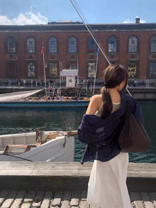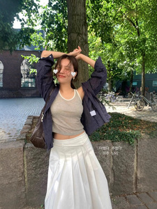 现 韩国设计师tann*t棉质格纹长袖衬衫韩系女装宽松休闲高级衬衣