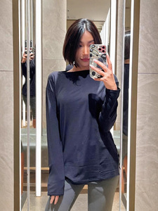 lulu同款女士秋季新款宽松船型领口长袖T恤侧开叉运动瑜伽打底