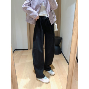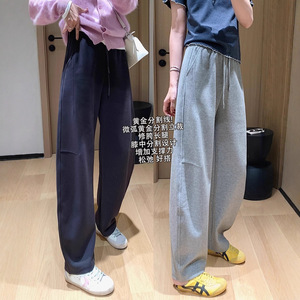 自留推荐!修腿黄金分割微弧廓形剪裁卫裤秋冬季宽松棉休闲裤子女