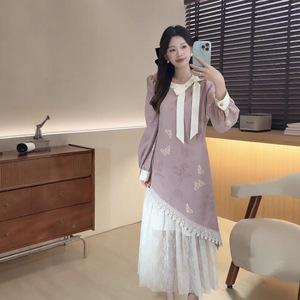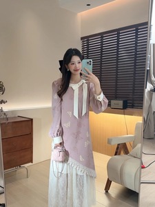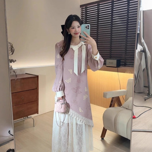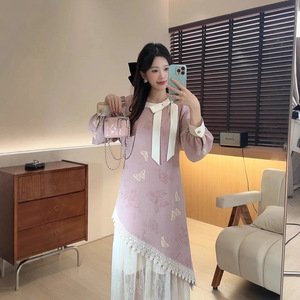 DD【月光缪斯】假两件连衣裙2025秋季新款长款粉色千金淑女温婉潮