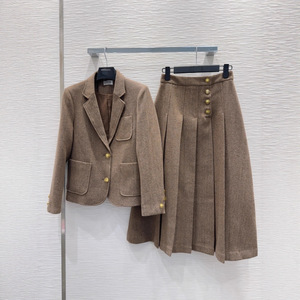 复古套装羊毛呢休闲时尚西装秋冬新款气质美拉德系金扣压褶半身裙