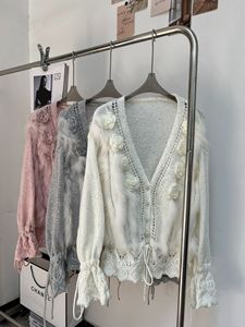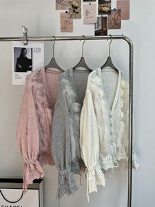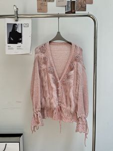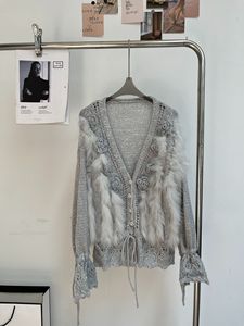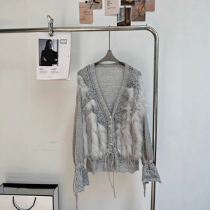 2025新款秋冬法式轻奢小香风立领小花针织开衫狐狸毛皮草外套毛衣