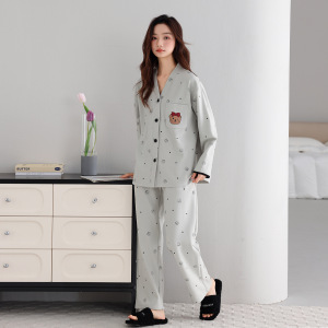 德绒保暖加绒睡衣女秋冬季长袖长裤和服V领开衫可外穿大码家居服