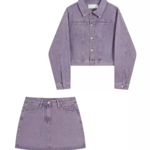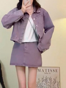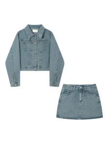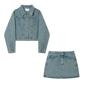 羊诚故事 休闲百搭牛仔套装裙女2025秋季新款外套半身裙两件套装