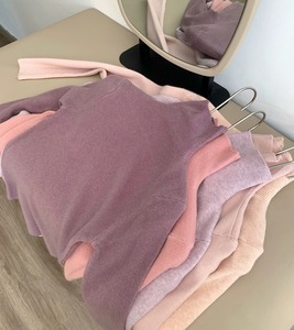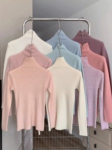 粉色高领针织打底衫女秋冬莫兰迪色毛衣设计感修身内搭长袖上衣潮