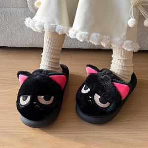 可爱小黑猫棉拖女居家棉拖鞋女加绒棉拖鞋男保暖鞋月子鞋女包头拖
