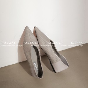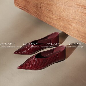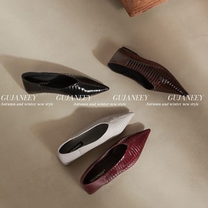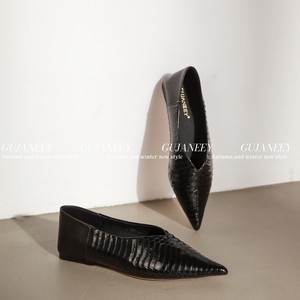 欧洲站女鞋25秋冬时尚软漆蛇皮拼胎牛皮尖头V口舒适平底工作单鞋