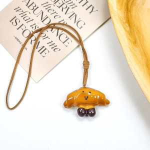 休闲风碱水面包贝果项链女小众设计感个性时尚可爱秋冬毛衣链挂饰