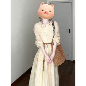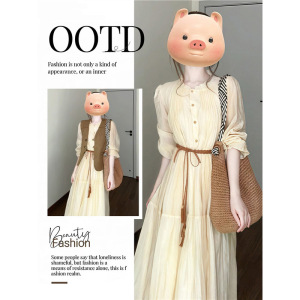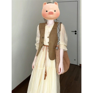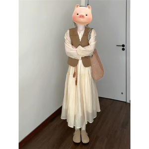 超火早秋一整套法式花边领高级长袖连衣裙外搭复古马甲绝美套装女