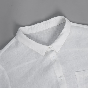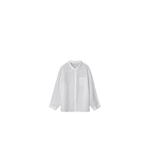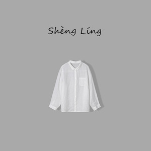 60支100%汉麻长袖衬衫月魄白/藏青色文艺复古宽松上衣SL50556