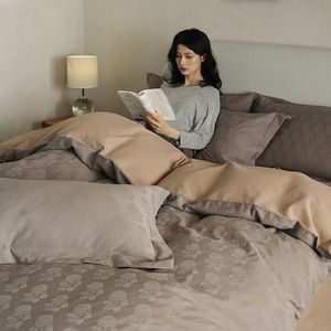 做工精细!A类100支磨毛长绒棉提花四件套全棉裸睡亲肤床单被套