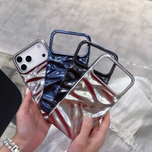 哑光电镀银色褶皱纹适用iPhone17pro max苹果16手机壳15/14高级感