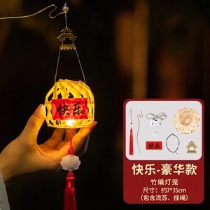 中秋节手提小灯笼八月十五2025国风儿童花灯竹编手工户外发光