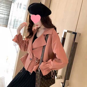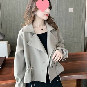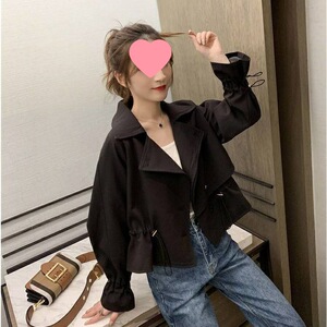 外衣女秋季新款女装韩版抽绳纯色短款风衣女神百搭小个子轻熟上衣