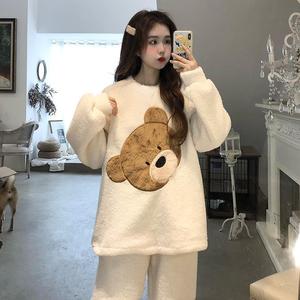 韩版睡衣女冬加厚加绒套装新款珊瑚绒小熊外穿可爱甜美家居服