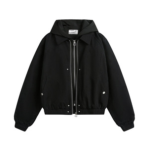假两件拼接连帽夹克外套男士秋冬高街朋克双层门襟设计感帆布工装