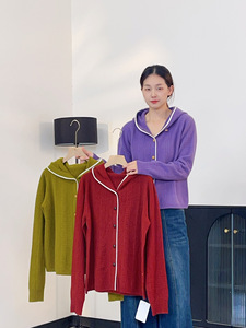 0910-181加厚款全羊毛连帽款羊毛开衫女装毛衣外套