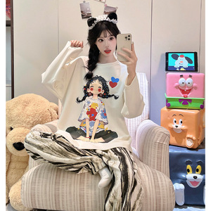 韩版可爱甜美ins卡通睡衣女春秋季圆领长袖长裤可外穿家居服套装