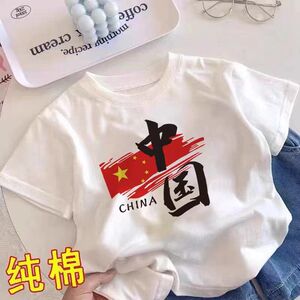 国庆新款儿童纯棉国潮爱我中国打底衫男女童夏季短袖T恤宝宝上衣
