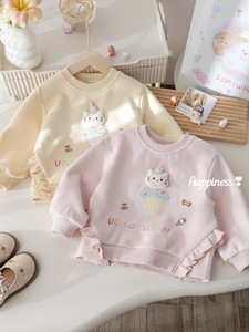 童装女童秋季新款可爱上衣宝宝韩版卡通刺绣卫衣儿童春秋休闲衣服