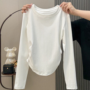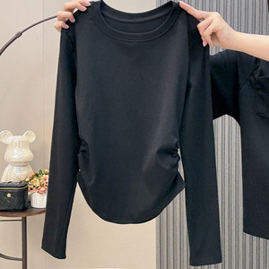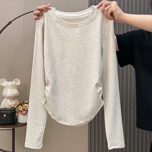 超火收腰长袖T恤女2025早秋新款洋气显瘦正肩短款上衣打底衫内搭