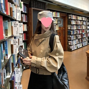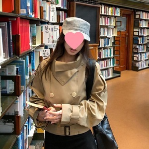 卡其色立领秋冬排扣带腰袢风衣高级气质感外套女