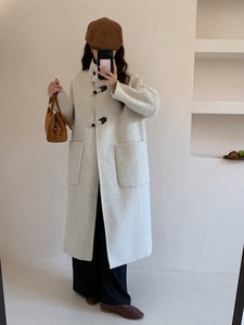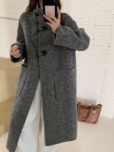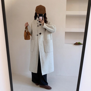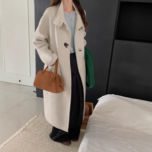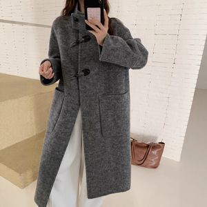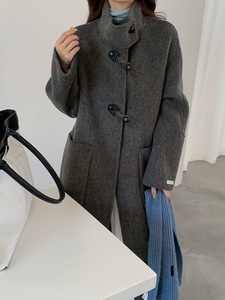 双面羊绒大衣女中长款韩系气质高级感慵懒风立领牛角扣羊毛呢外套