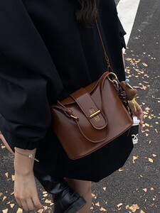 都市简约复古小包包女2025新款潮外出手拎包流行单肩斜挎包水桶包