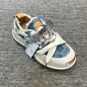 开口笑2.0大头帆布鞋女 牛仔蓝蝴蝶结情侣增高休闲板鞋男笑脸鞋潮