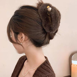 秋冬法式毛绒毛毛抓夹女珍珠亚克力大号鲨鱼夹发量多后脑发饰夹子