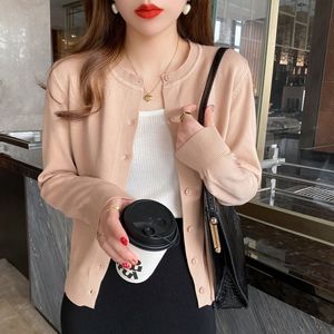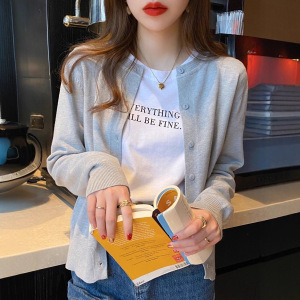 早秋季新款针织开衫外套女韩版薄款显瘦圆领长袖外搭毛衣黑色上衣