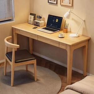 全实木窄书桌卧室中小学生写字桌居家办公桌带抽屉客厅成人电脑桌
